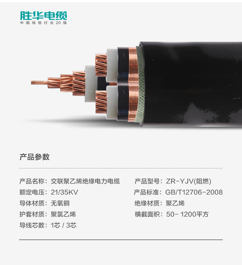 勝華電纜ZR-YJV-2135KV高壓阻燃交聯(lián)銅芯電力電纜